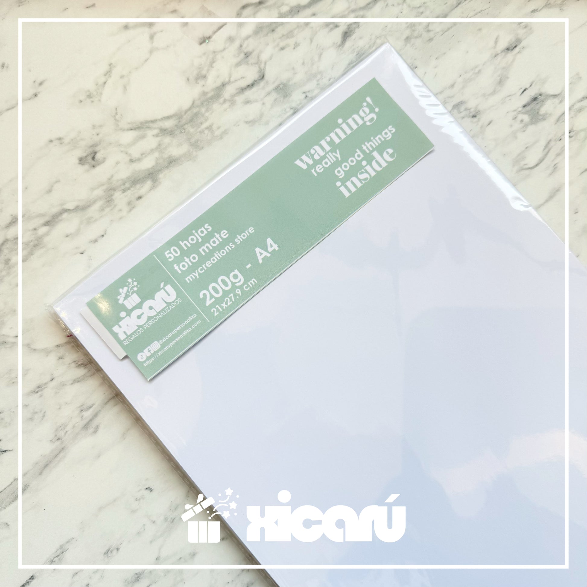 Papel fotográfico mate (photo paper matte) extra blanco 200gr. Tamaño carta. Contiene 50 hojas.