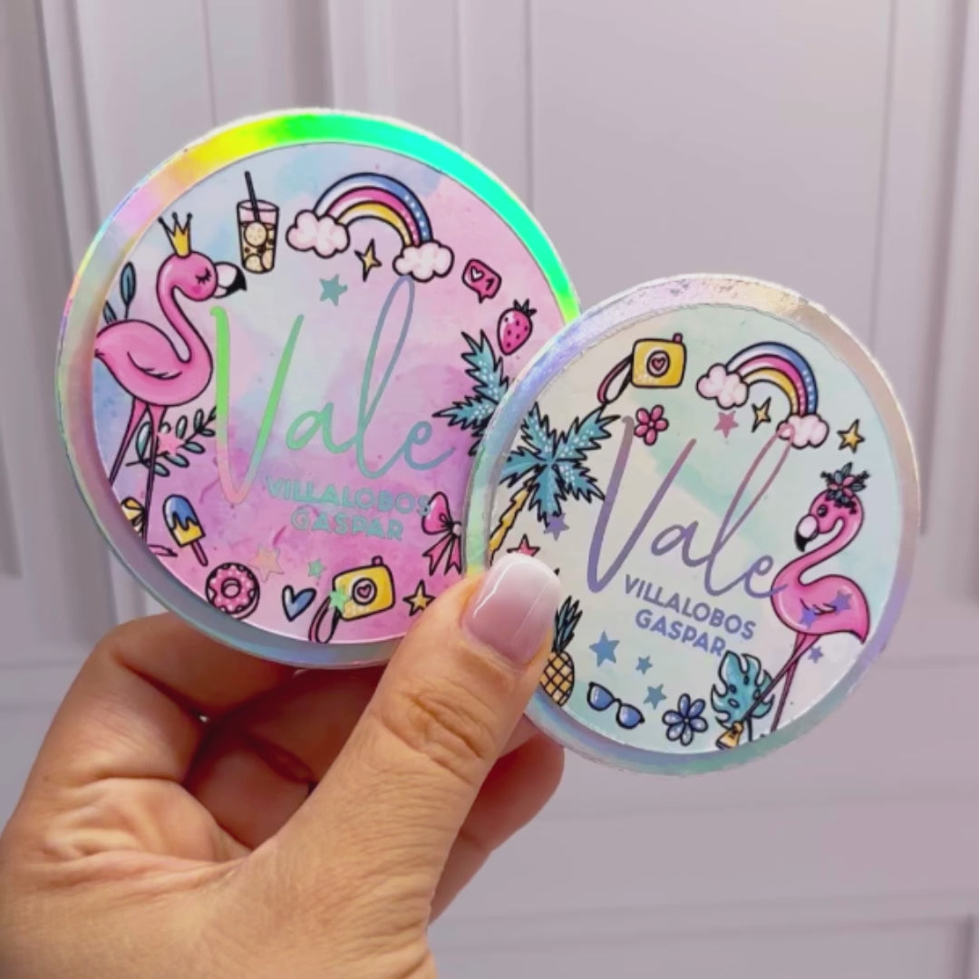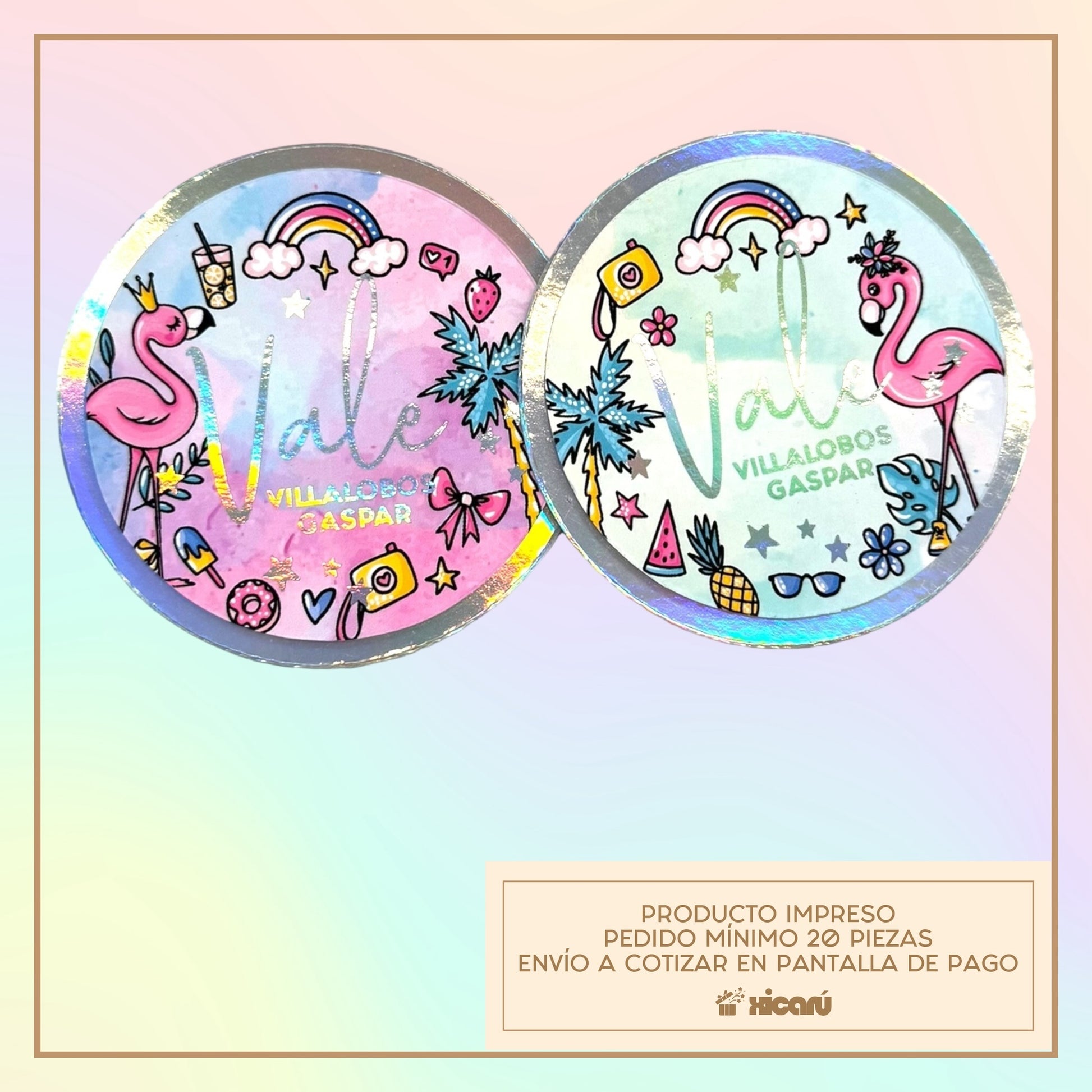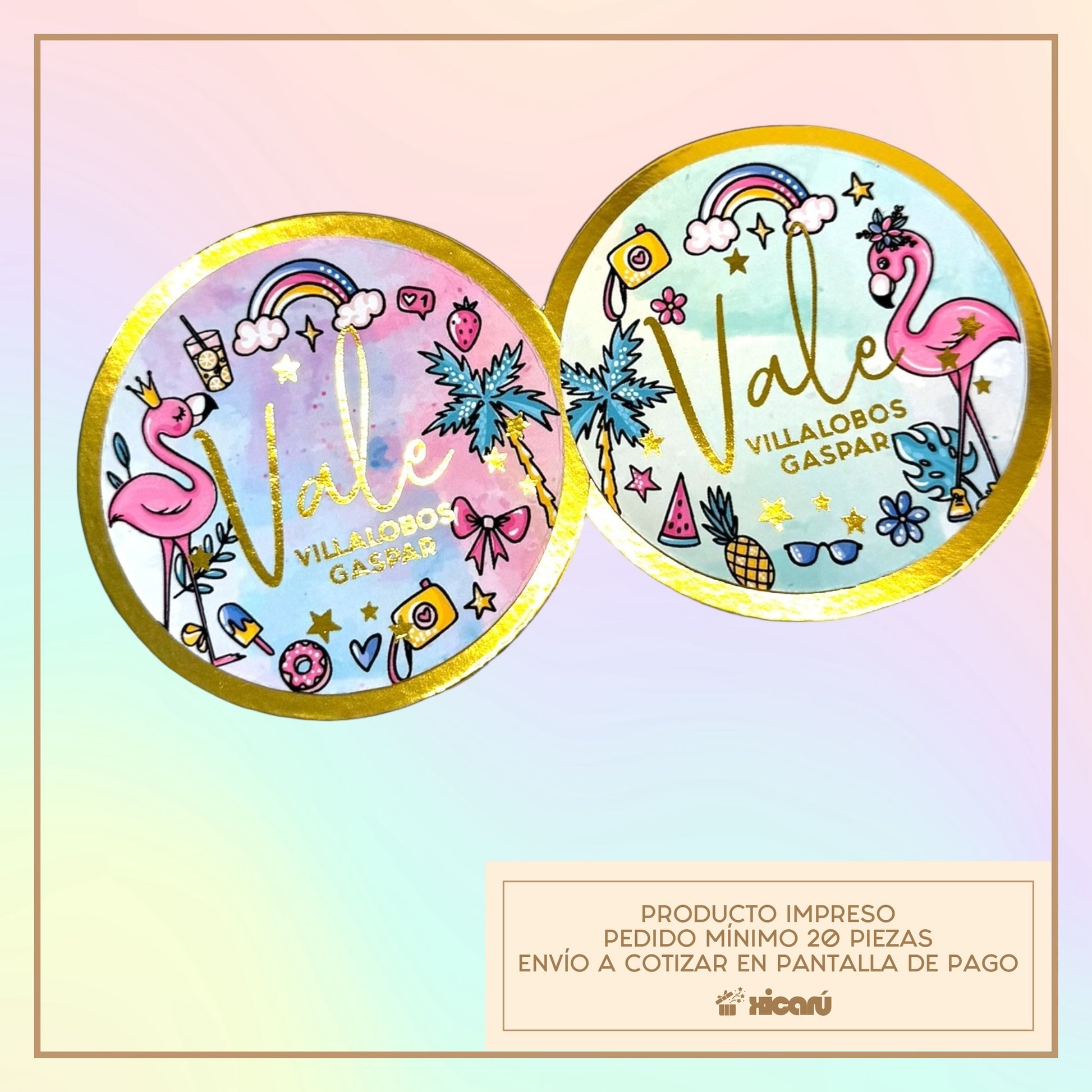 Tarjetas personalizadas con tema de Flamingos, tal como se ve en la foto, no incluye cambios en el diseño gráfico. La personalización incluye efecto metálico en el nombre (todos iguales).