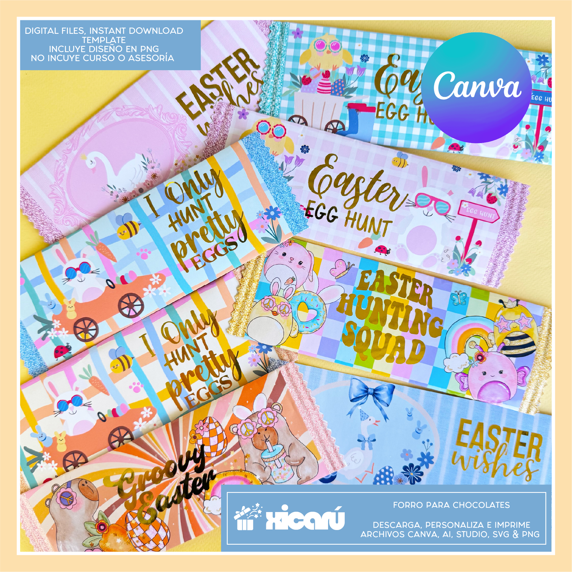★ Seis diseños digitales para forros de chocolates, en formato PNG en RGB, tamaño carta. Archivos PDF tamaño carta, SVG y Ai.