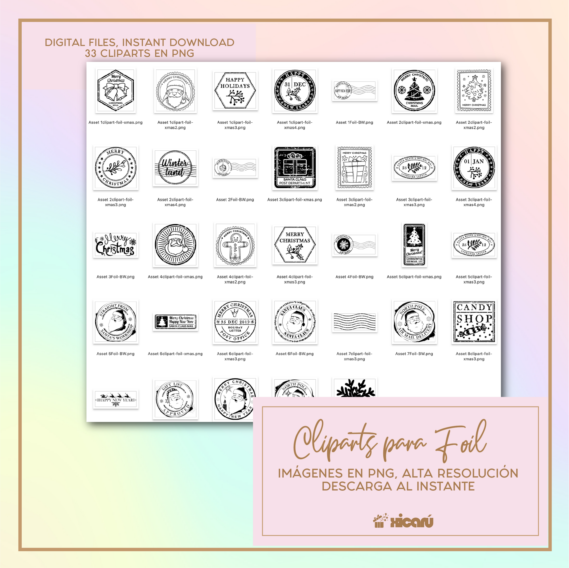 ★ Este artículo son cliparts en PNG en negro absoluto para aplicación de foil.