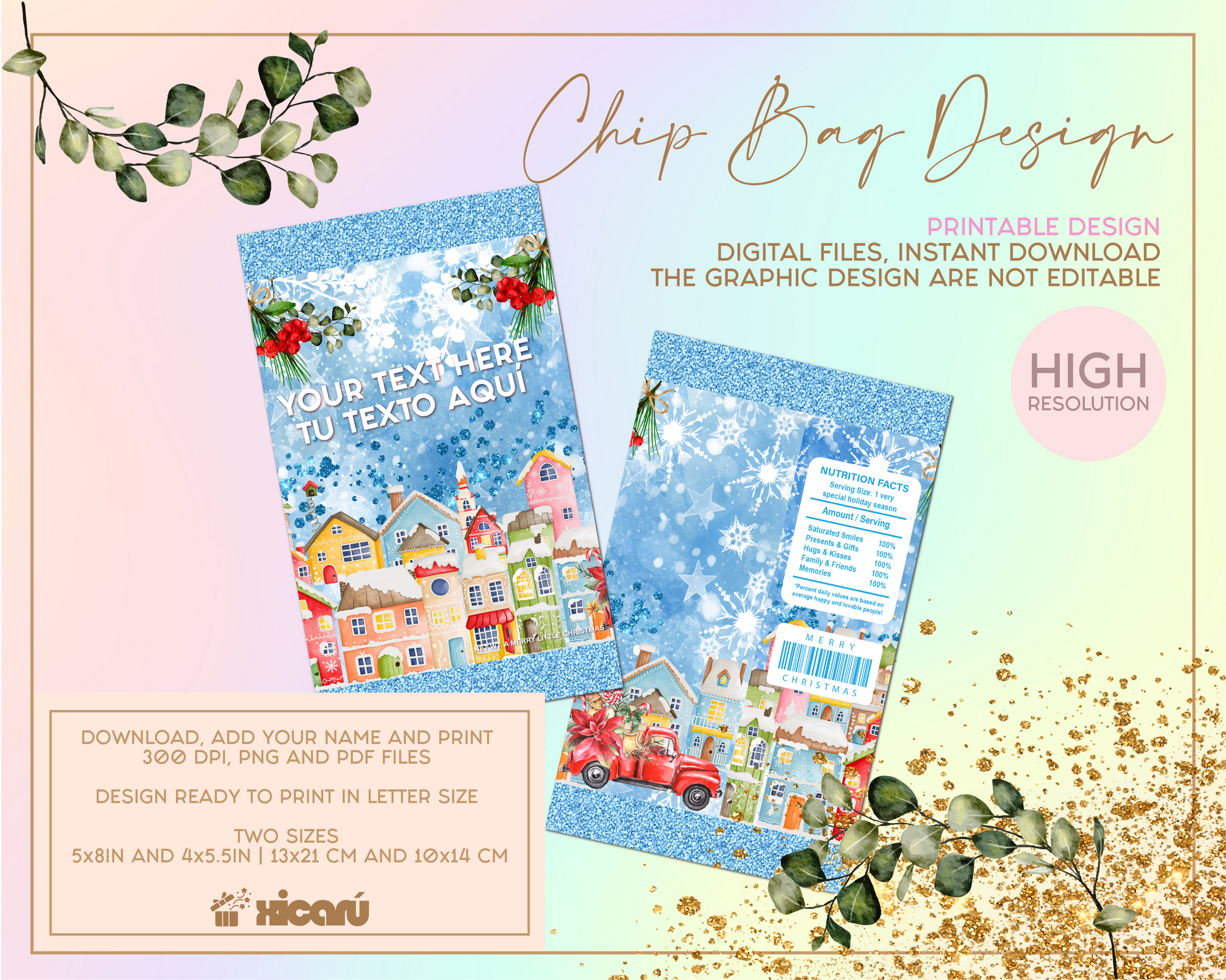 Xmas Village, Christmas Chip bag, digital ChipBag, Bolsa para imprimir, christmas treat
