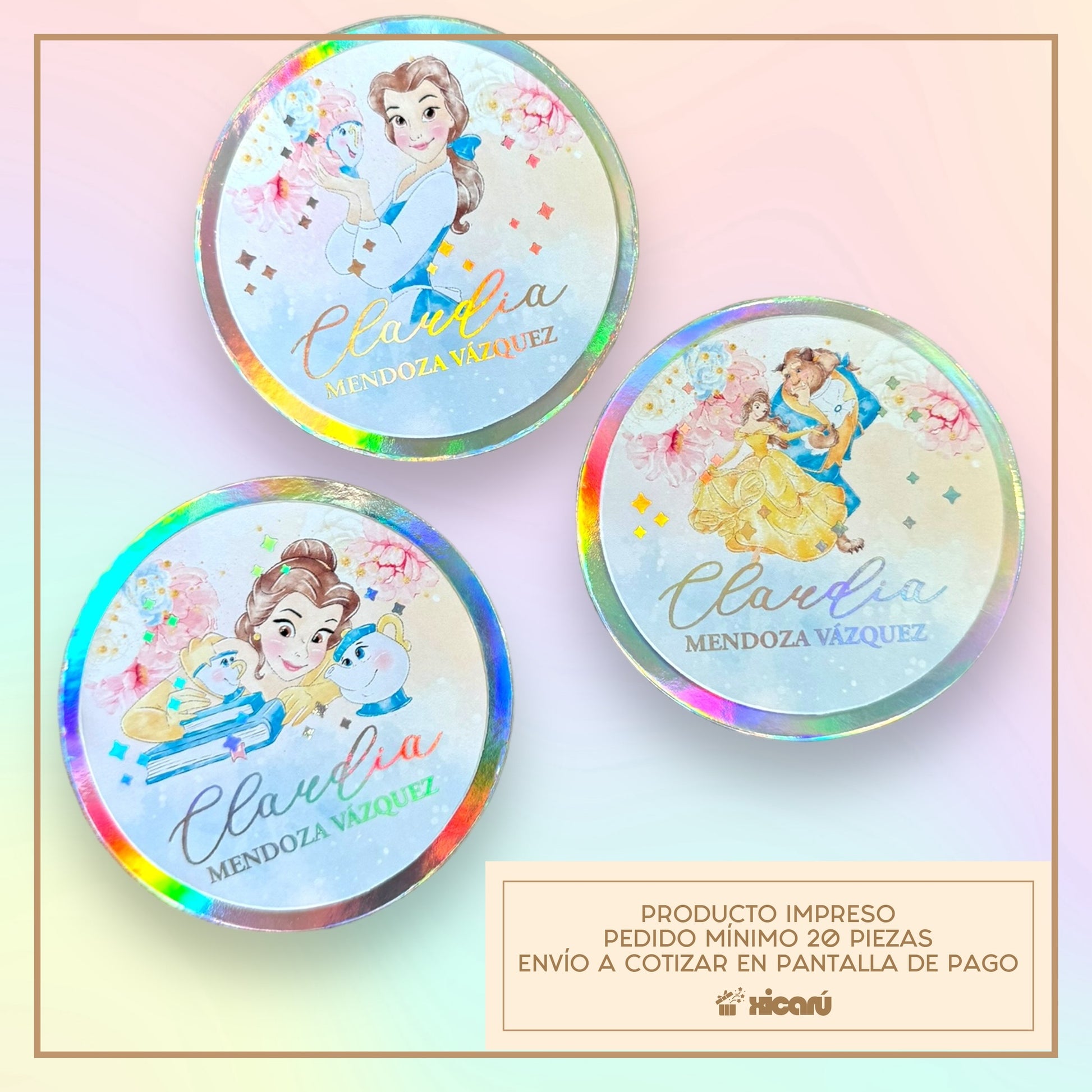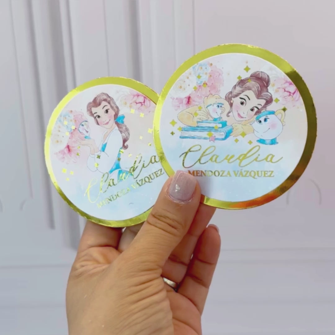 Tarjetas personalizadas con tema de Castillos y Princesas, tal como se ve en la foto, no incluye cambios en el diseño gráfico. La personalización incluye efecto metálico en el nombre (todos iguales).