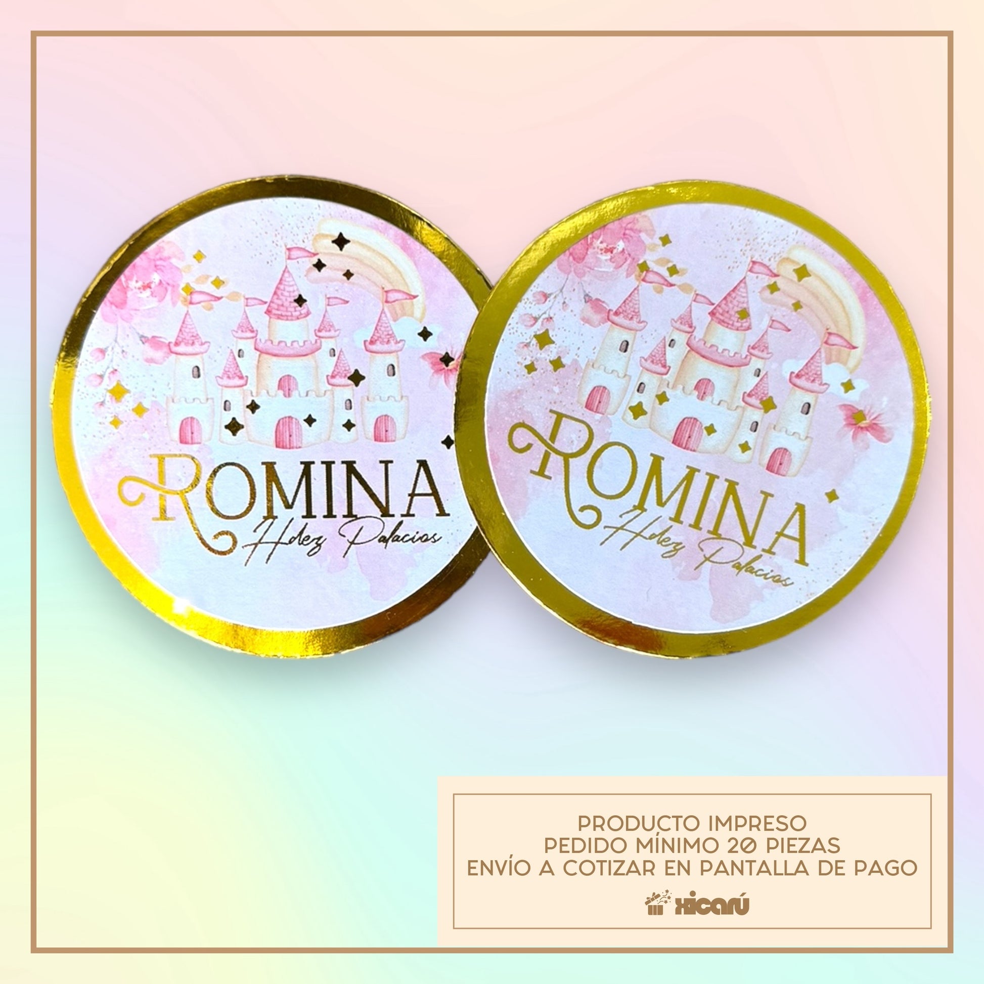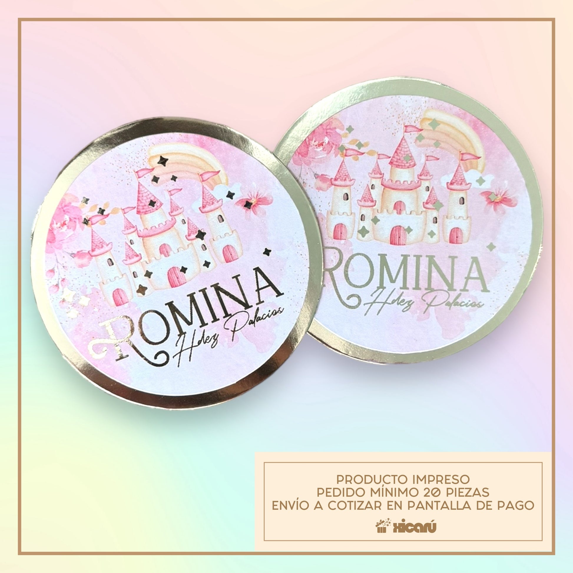 Tarjetas personalizadas con tema de Castillos y Princesas, tal como se ve en la foto, no incluye cambios en el diseño gráfico. La personalización incluye efecto metálico en el nombre (todos iguales).