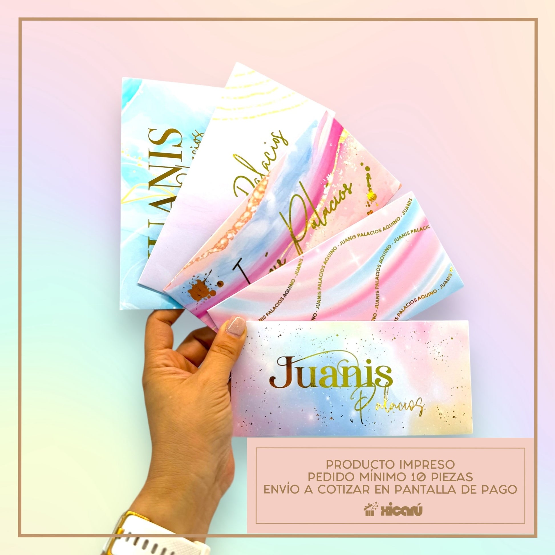 ¡Añade un toque personalizado a tus regalos monetarios con nuestro exclusivo sobre para money holder! Diseñado para destacar y sorprender, nuestro sobre personalizado es la manera perfecta de presentar dinero en efectivo u otros obsequios financieros de una manera elegante y única.