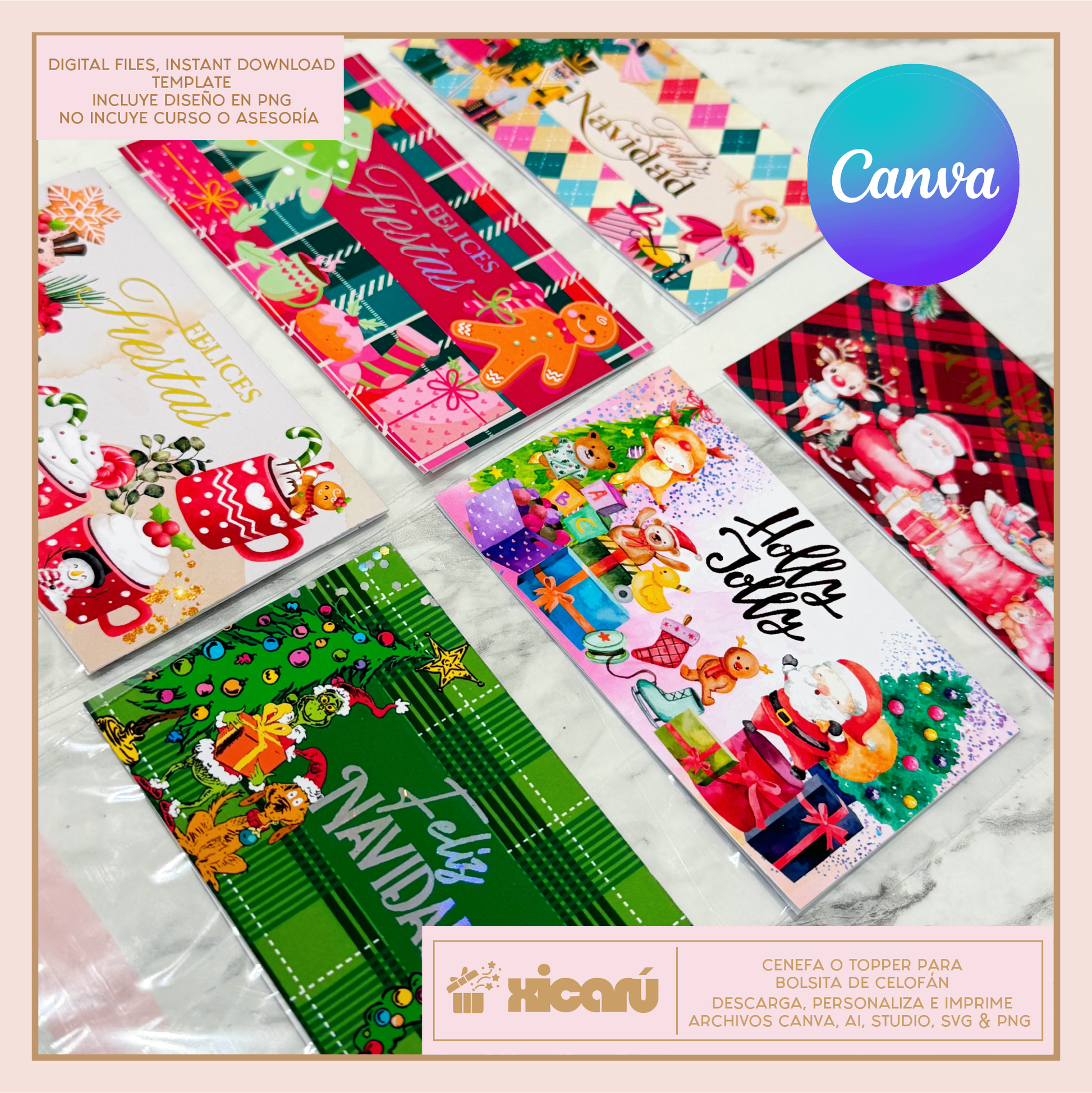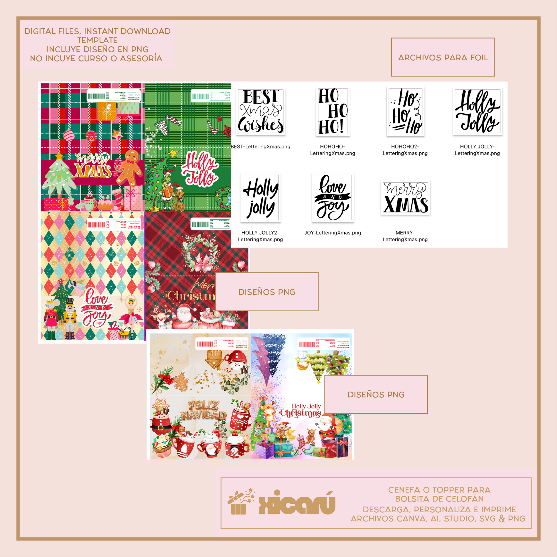 ★ Seis diseños digitales para bolsitas de celofán, en formato PNG en RGB, tamaño carta. Archivos PDF tamaño carta, SVG y Ai.