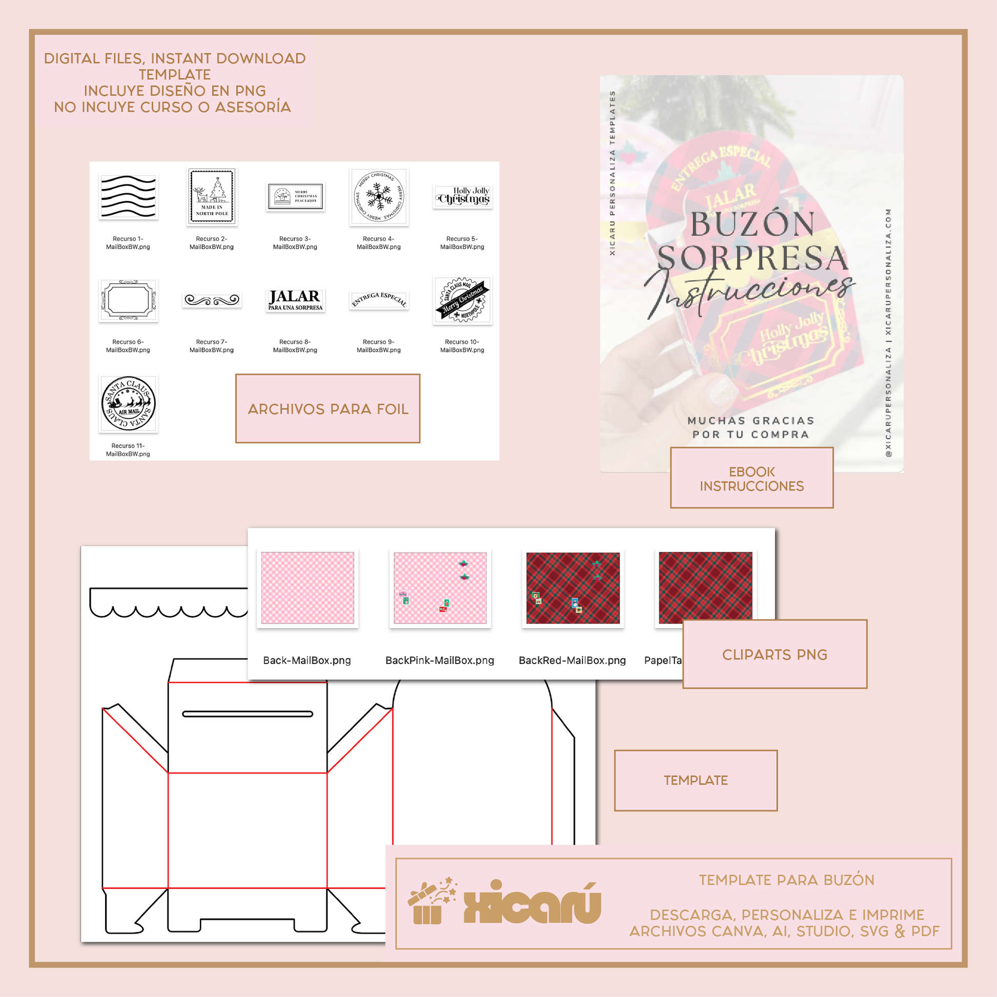 ★ Una plantilla para cortar y armar un buzón, en formato Ai, Studio y SVG. Papeles digitales y Cliparts.