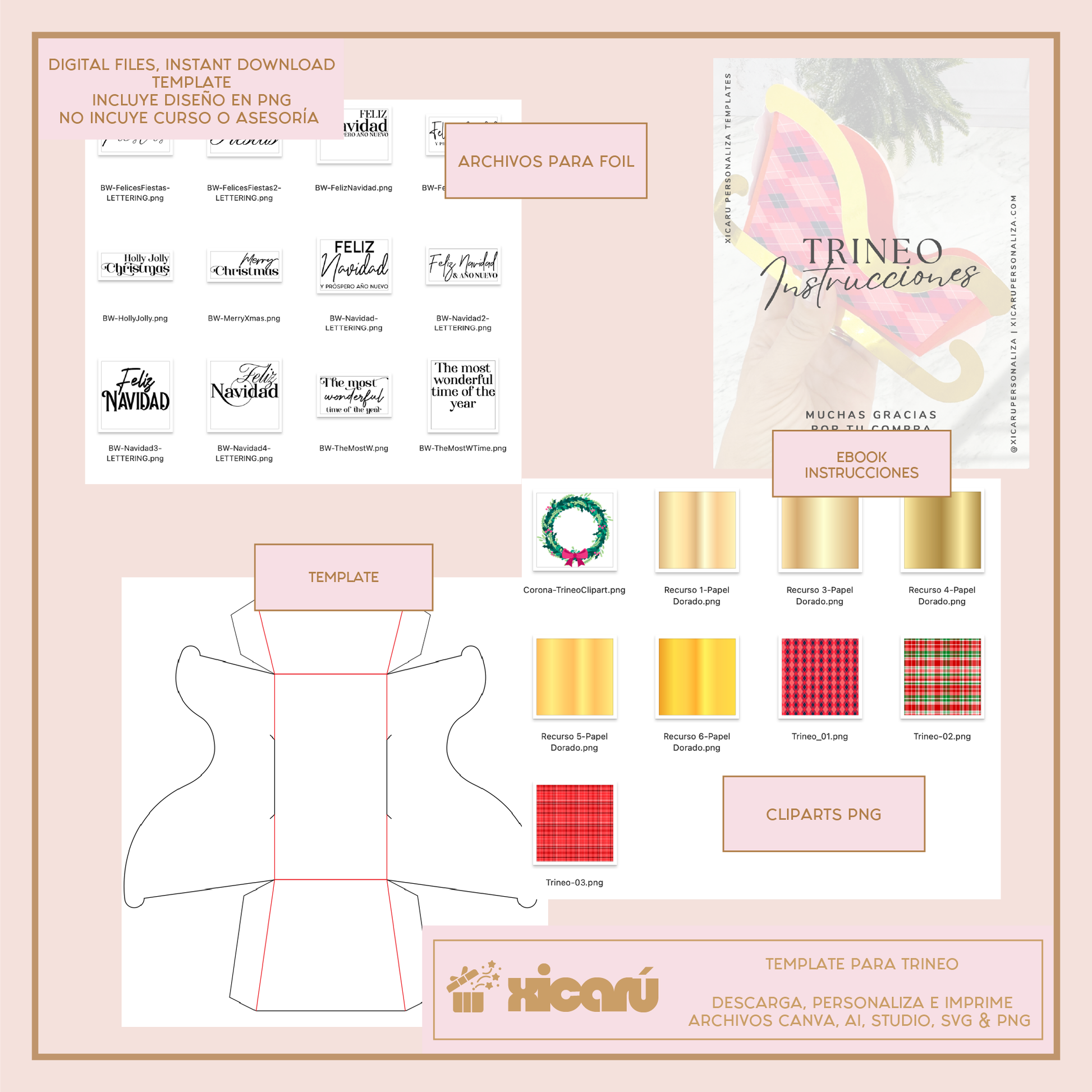 ★ Una plantilla para cortar y armar un TRINEO, en formato Ai, Studio y SVG. Papeles digitales y Cliparts.