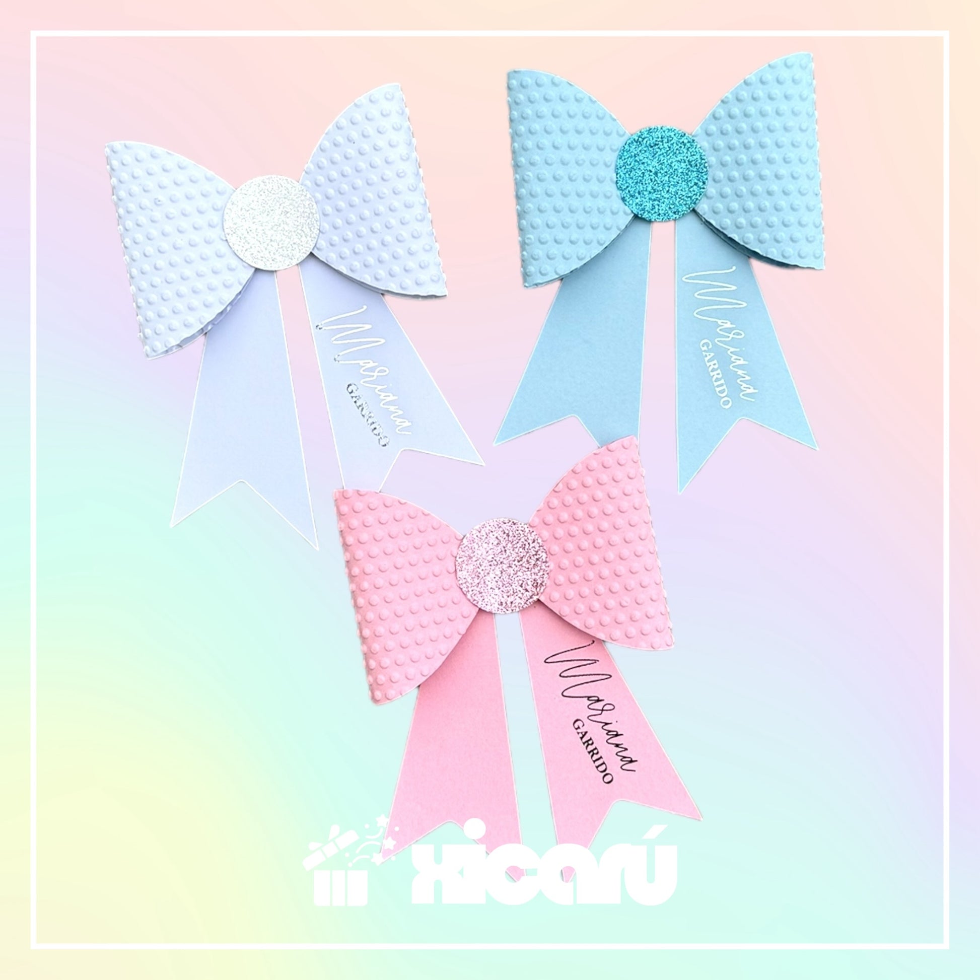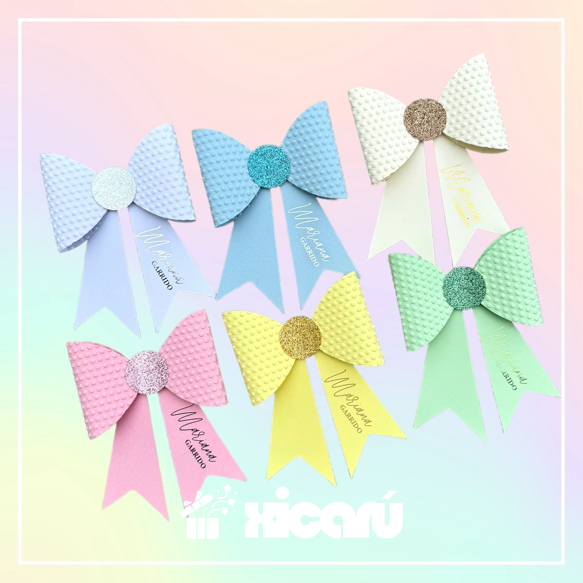 ¡Añade un toque personalizado a tus regalos con nuestros moño de papel! Son dos en uno, te sirven como decoración y tarjeta de regalo, ya que incluyen tu nombre 👌
