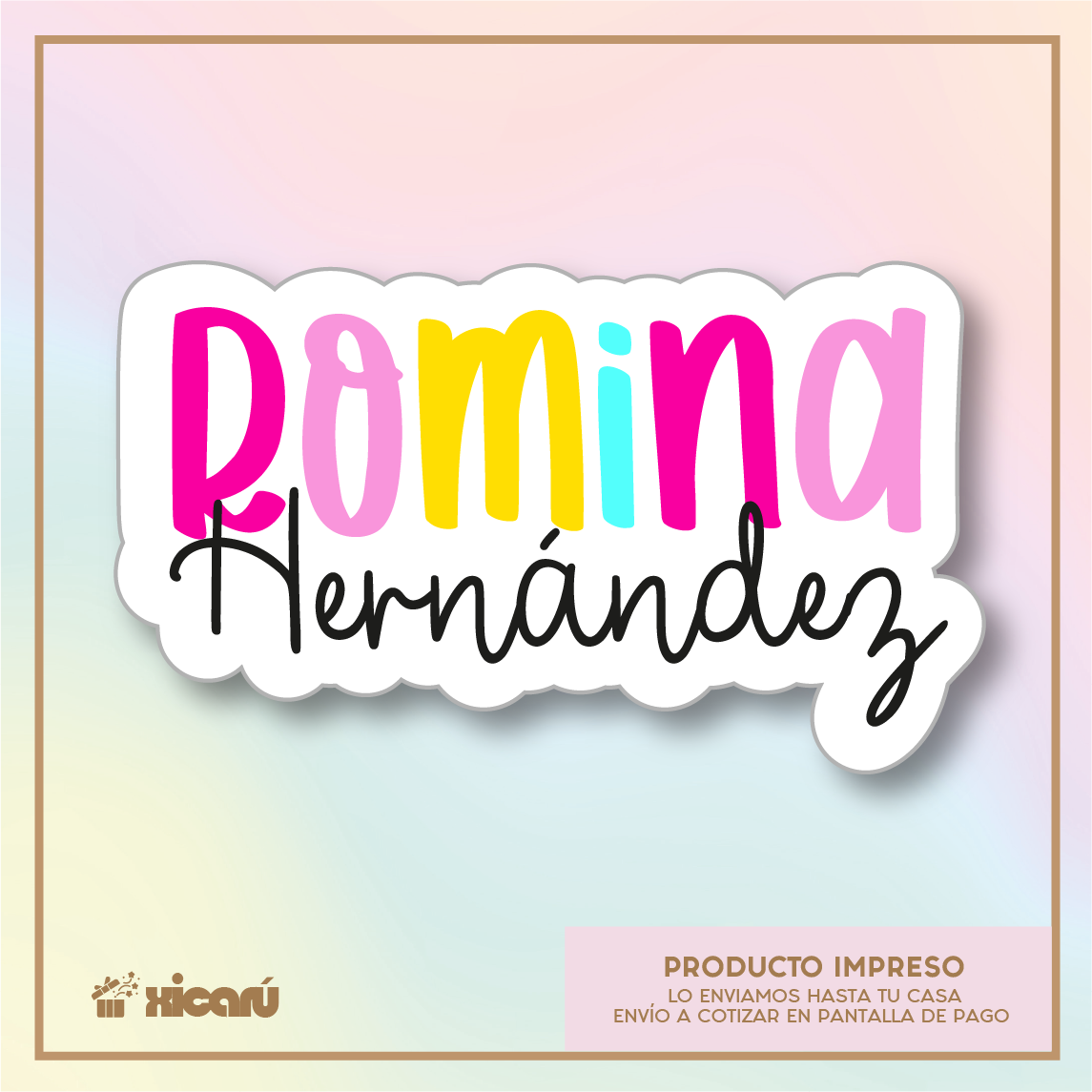 Hermosos stickers personalizados. Elige entre papel con efectos metálicos o contra agua. Perfectos para decorar regalos o etiquetar tus útiles escolares, nuestros stickers combinan calidad y personalización en cada detalle.