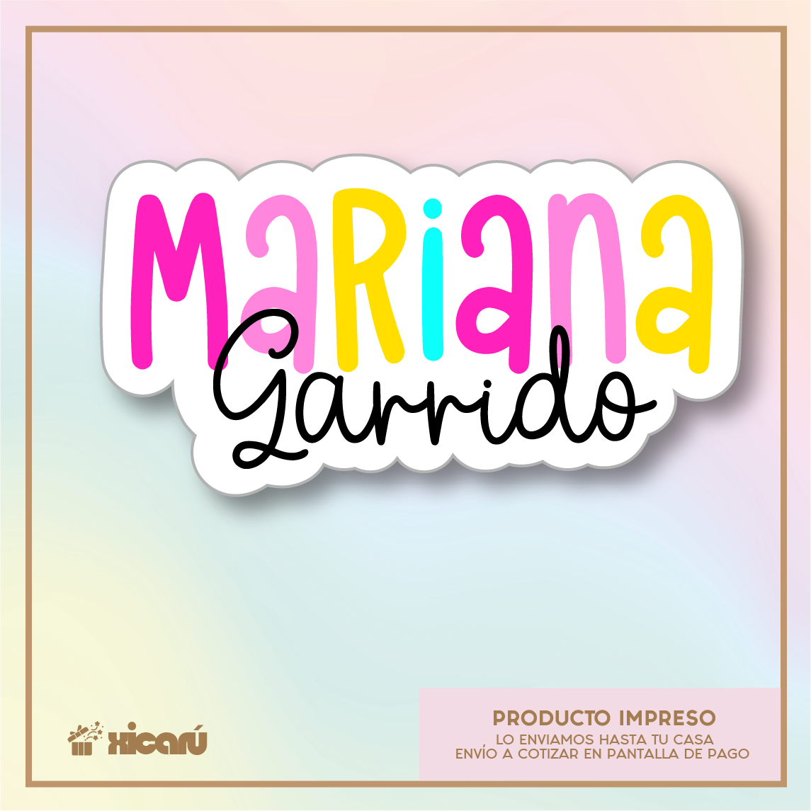 Hermosos stickers personalizados. Elige entre papel con efectos metálicos o contra agua. Perfectos para decorar regalos o etiquetar tus útiles escolares, nuestros stickers combinan calidad y personalización en cada detalle.