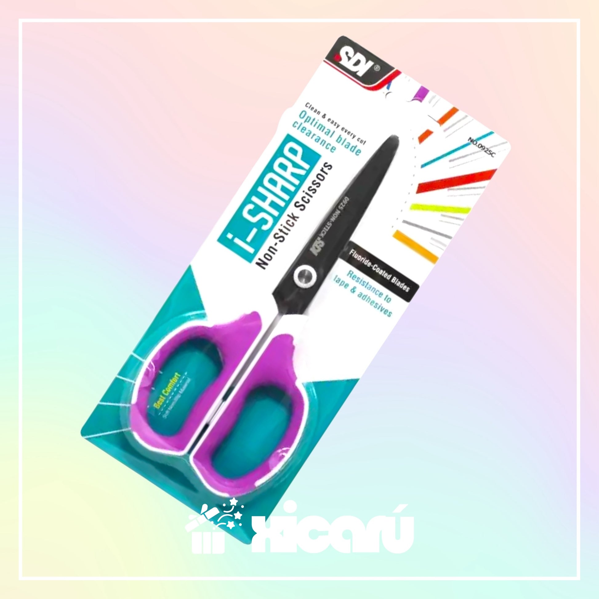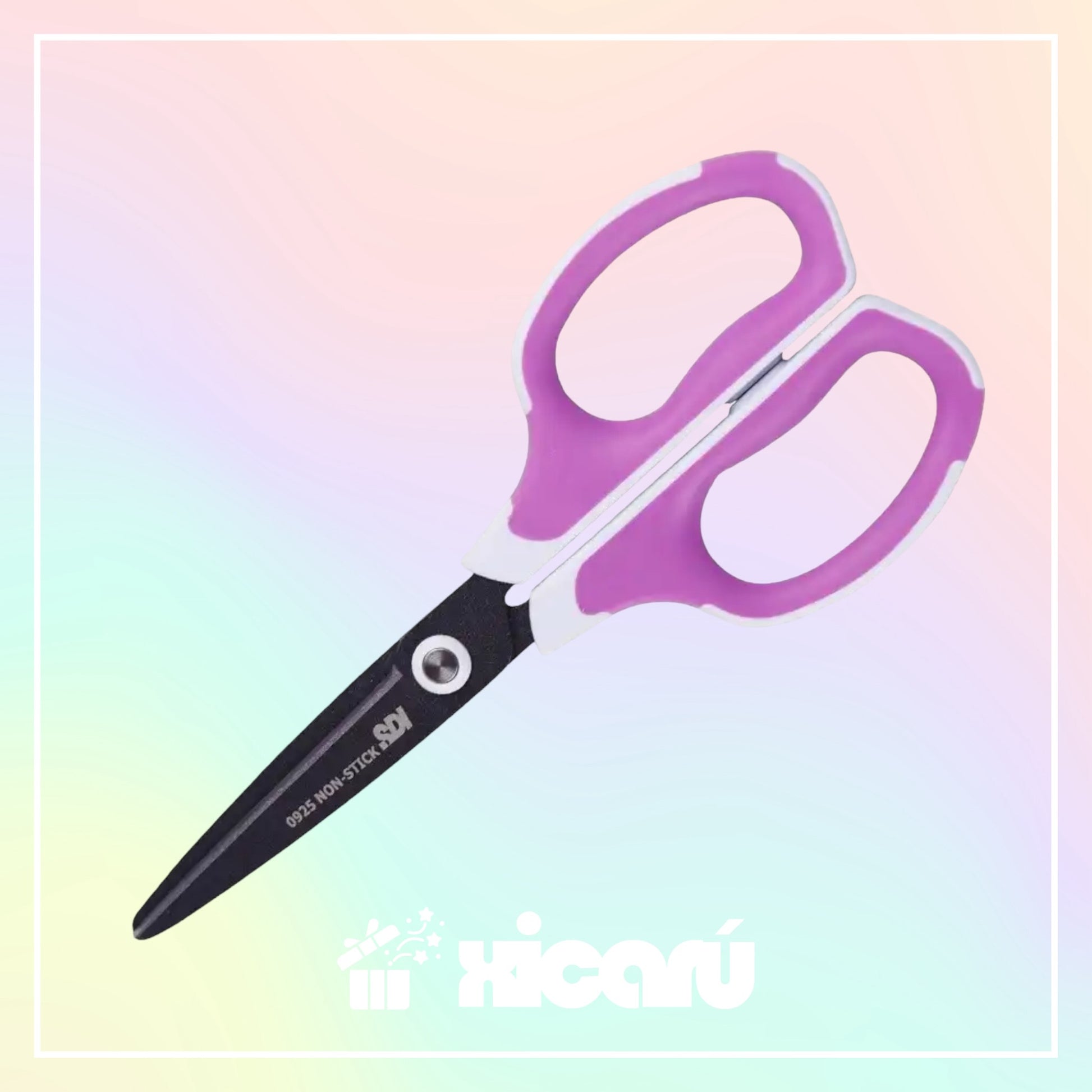 Tijeras antiadherentes, ideal para cortar cinta adhesiva con un corte limpio y sin residuos.