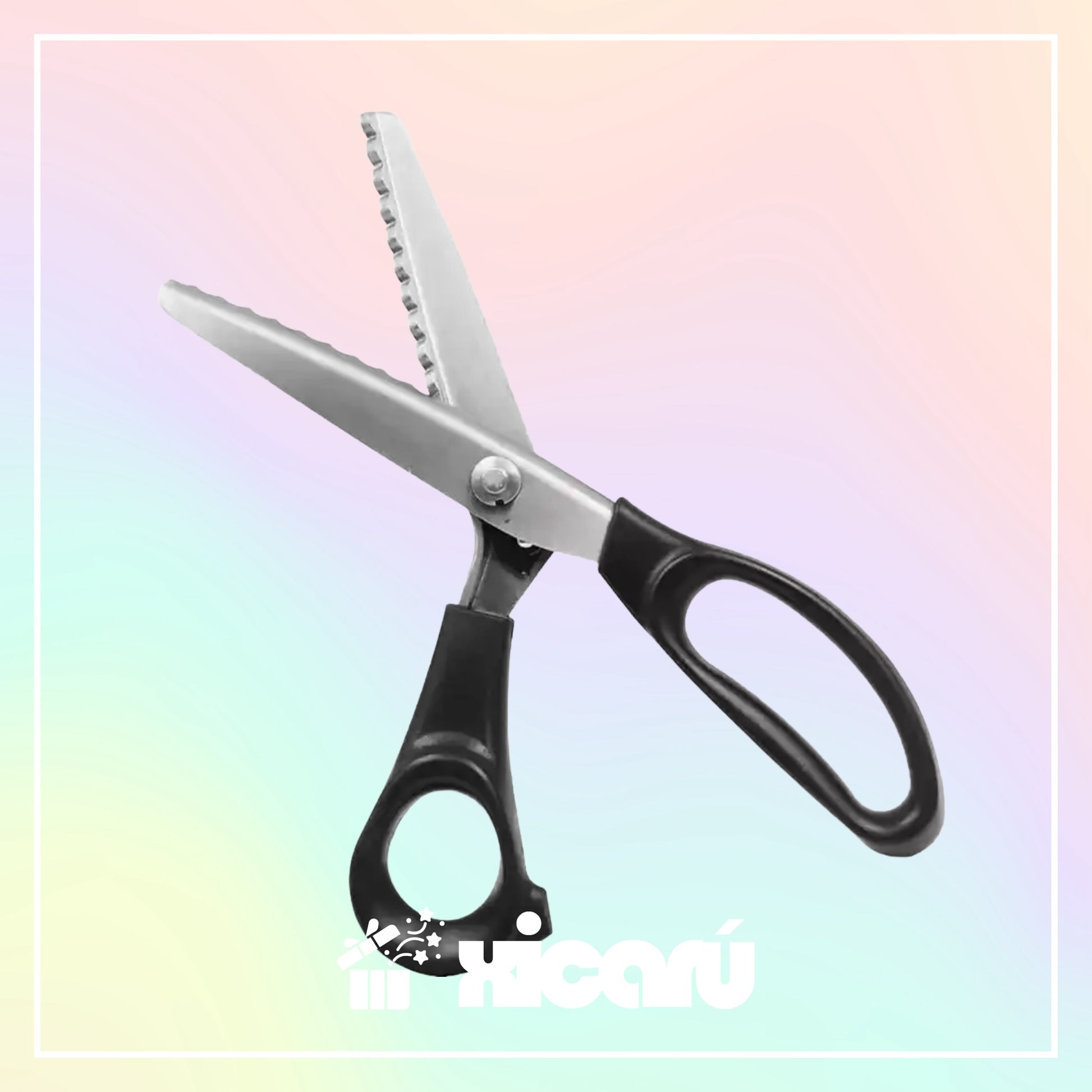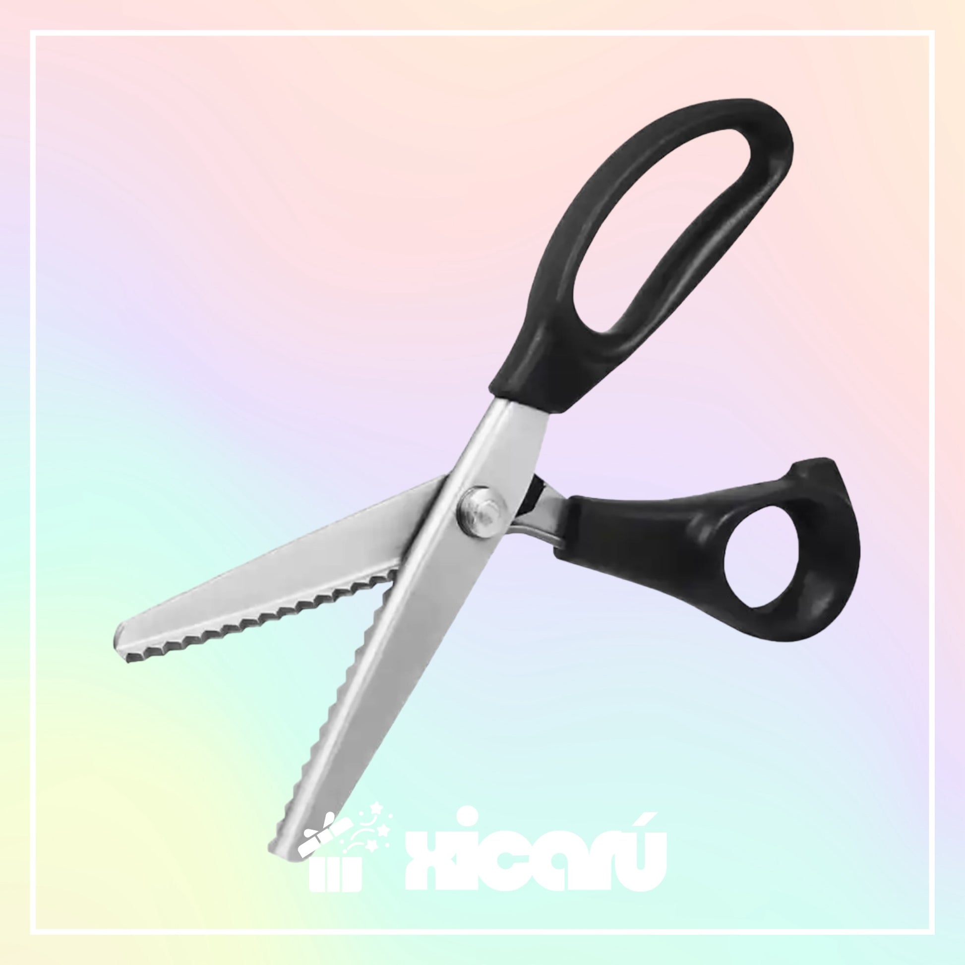 Tijeras de acero inoxidable de larga duración; ideal para cortar orillas de chipbags, forros de chocolate y demás manualidades.