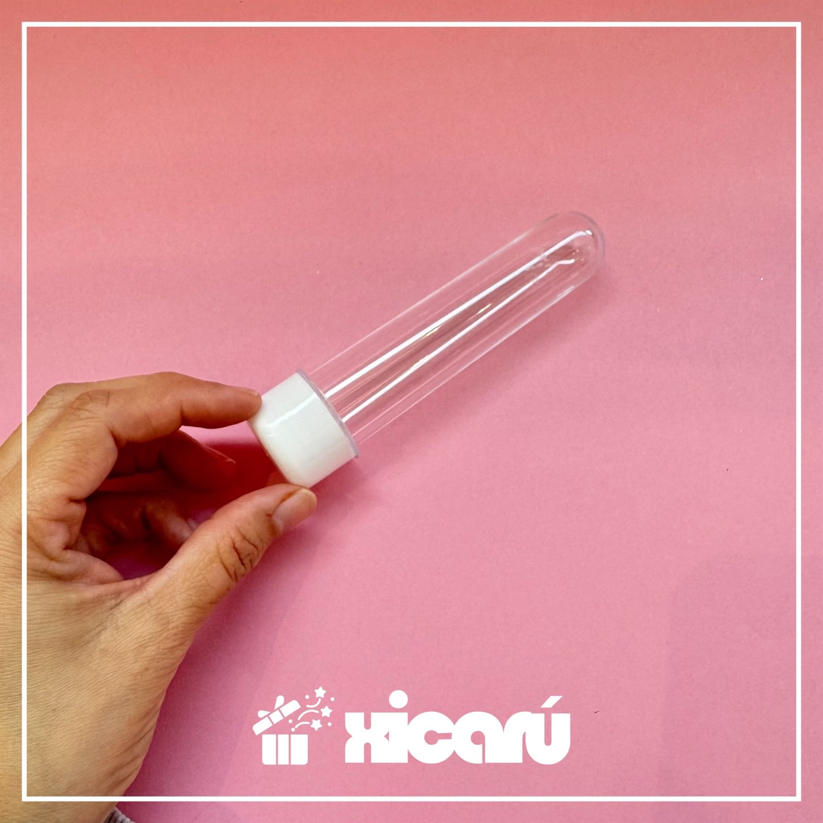 Tubo de plástico con tapa. El paquete incluye 6 piezas. Color transparente.