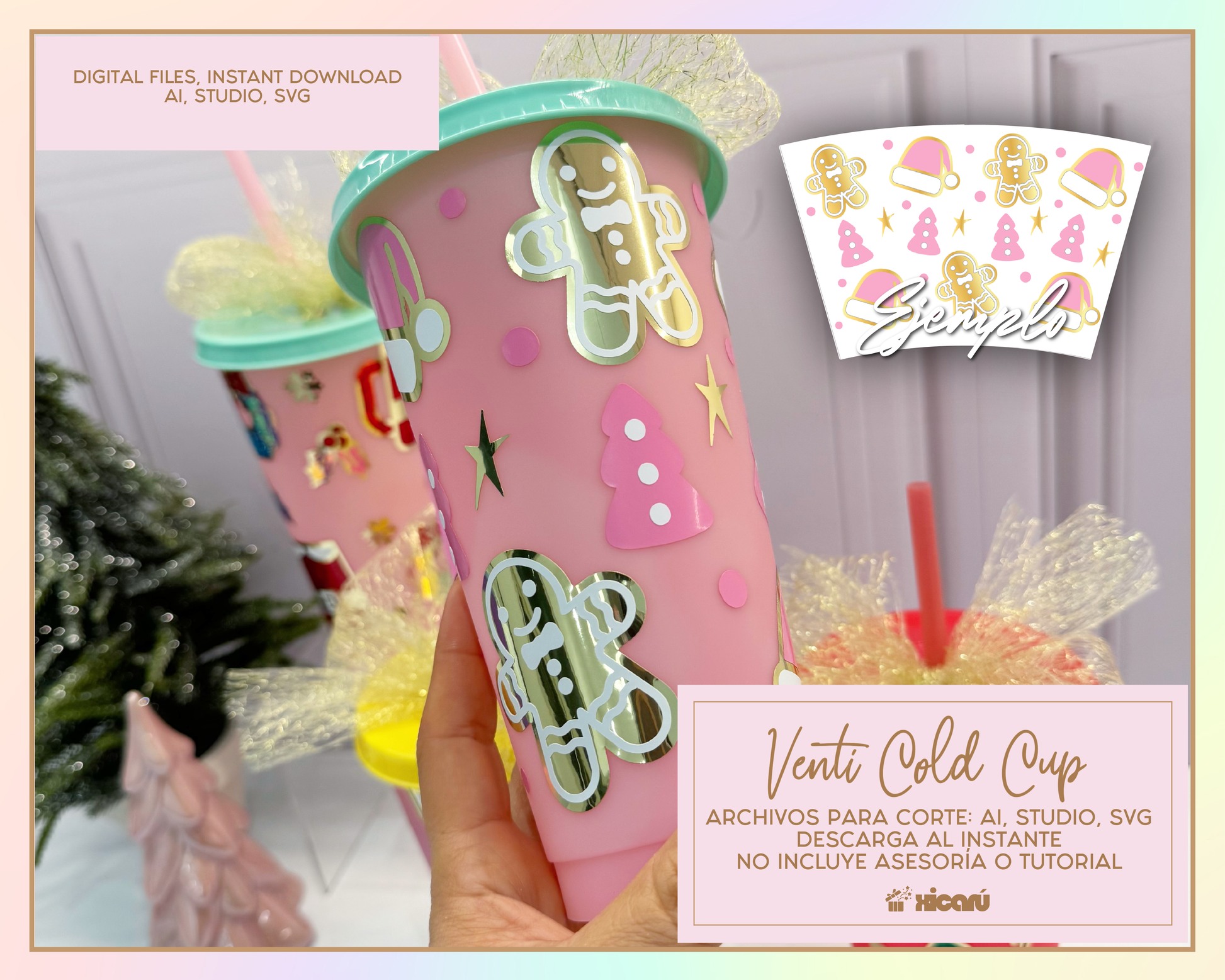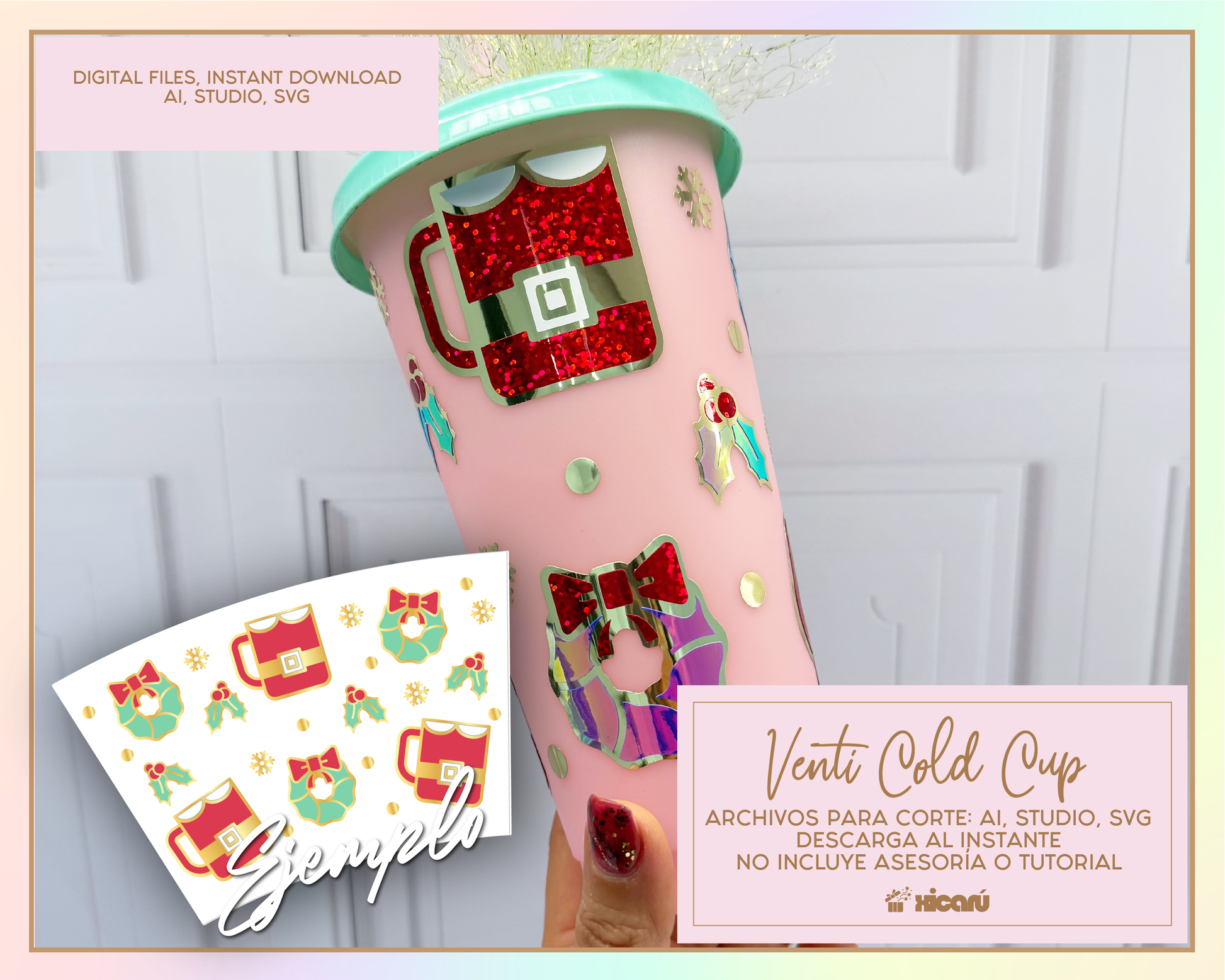 ★ CUATRO diseños en tres formatos de Archivos digitales: SVG, STUDIO, AI. Diseño para envoltura de Vaso tipo VENTI. El diseño NO incluye hoyo para el logo de Starbucks.