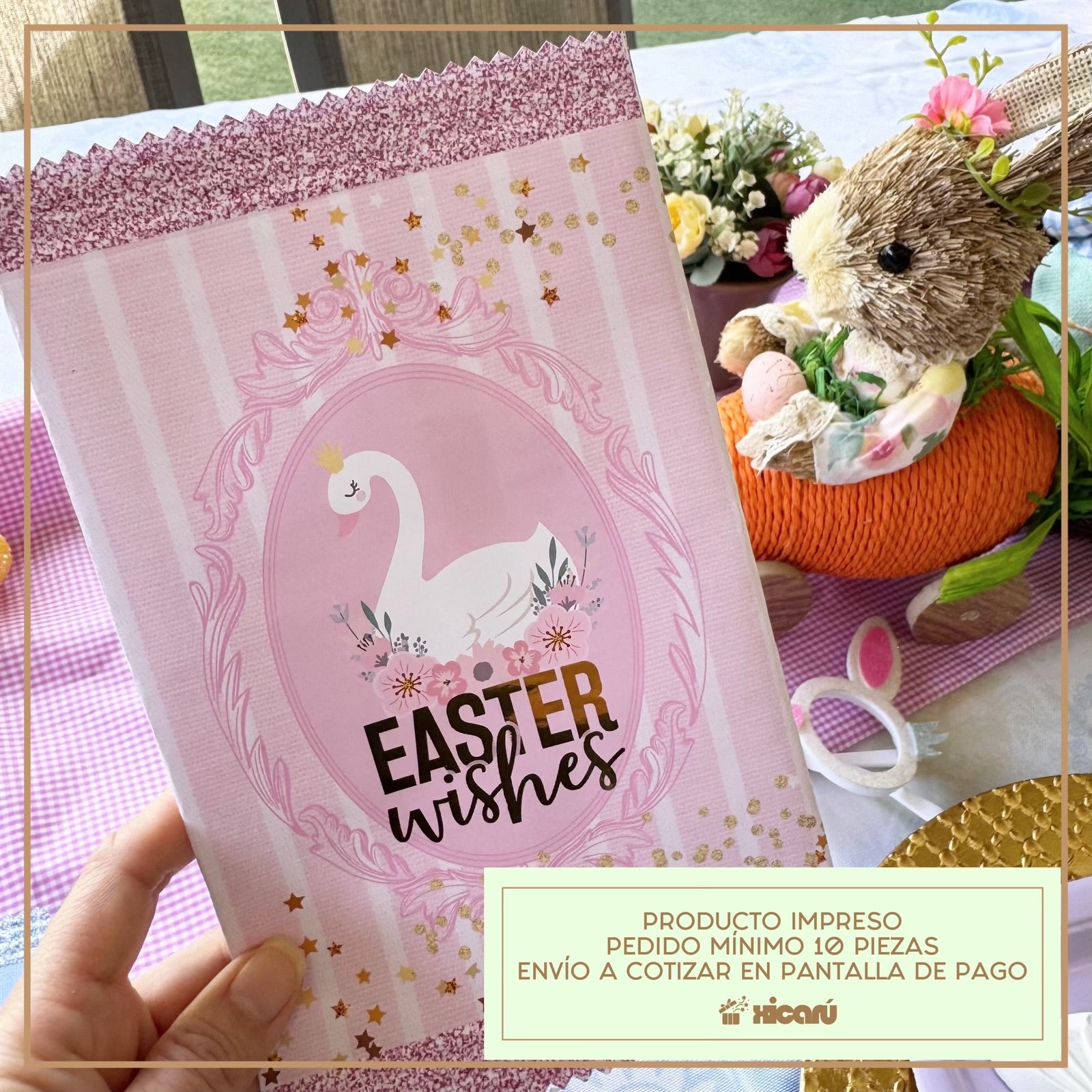 ChipBag impresa en papel tipo glossy. Personalizado con tema de Pascua, tal como se ve en la foto, no incluye cambios en el diseño gráfico.