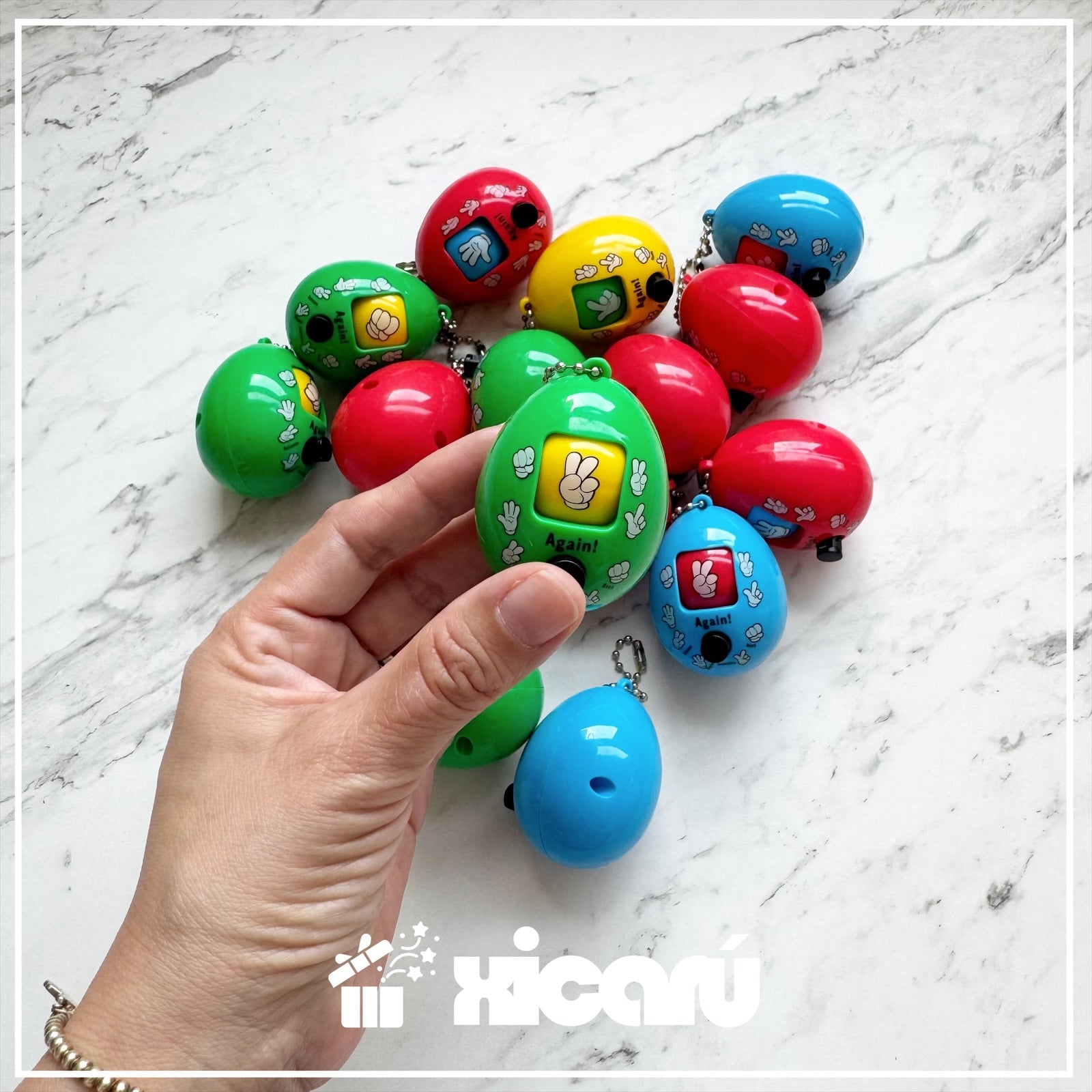 Llavero rock-paper-scissors. Regalo para fiestas infantiles. Contiene 6 piezas. No necesita baterías.
