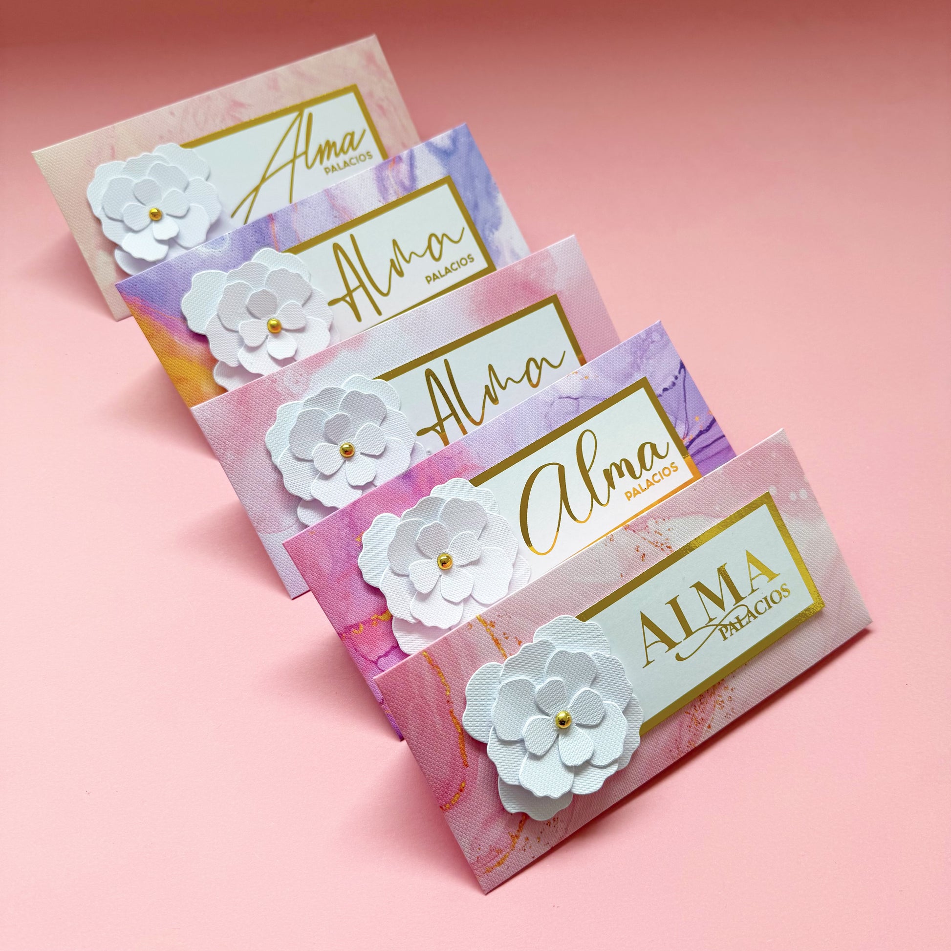 Kit 1: 5 Sobre billetero 17x8cm; 5 Sobre mini 8x8cm; 5 tarjetas 8cm